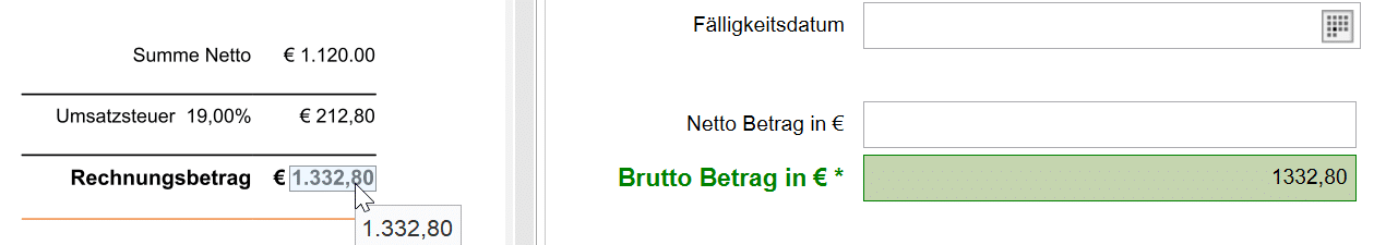 Die Erfassung von Rechnungsbeträgen mit der Click-OCR funktioniert jetzt noch leichter. Beträge mit Komma, Punkten oder Leerzeichen als Tausendertrennzeichen oder mit Punkt anstelle eines Kommas, werden bereits bei der Eingabe in das richtige Zahlenformat umgewandelt.