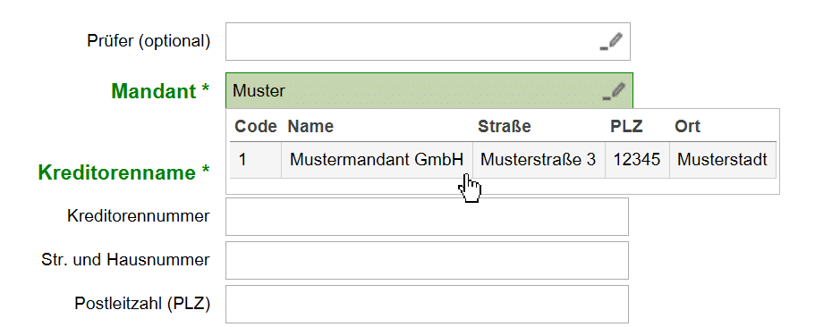 Sie können Ihre Mandanten in einer Datenbank über das Kundenportal pflegen und bei der Datenerfassung im Rechnungsformular abfragen. Zudem wird der, von der Belegerkennung erkannte, Name des Mandanten mit den Mandanten in der Datenbank abgeglichen und gegebenenfalls ausgelesen und im Formular ausgefüllt.