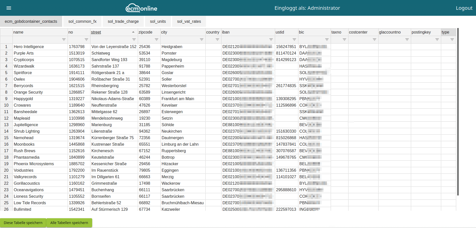 Außerdem können Ihre bestehenden Stammdaten ganz einfach, ähnlich wie in Excel-Tabellen, bearbeitet, gelöscht, erweitert und wieder gespeichert werden. Lesen Sie mehr über die Stammdatenbearbeitung in unserem Help-Center-Artikel.